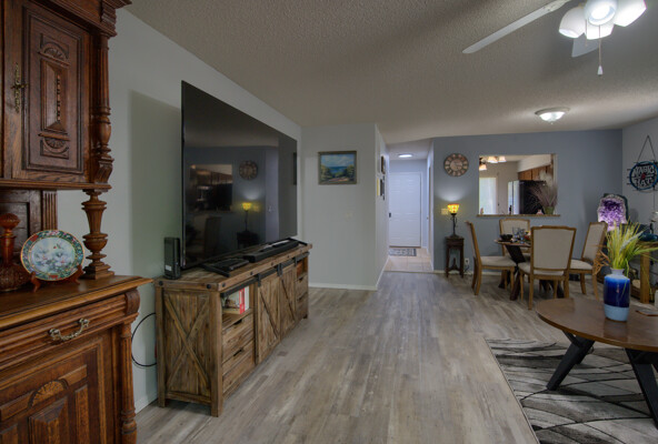 SOLD! Totally updated one level Townhouse in desirable Majorca Courts, near Lake Pineda, The Fitness Center, Tennis Courts, the Library and Lake Coronado, plus 3 golf courses. Don't miss this one, tiles in the Kitchen and LVP flooring throughout the rest of the house (no carpet), open floorplan, large eat-in Kitchen with large pantry. All upgraded stainless steel appliances (Refrigerator and washer & dryer less than one year old), granite and quartz countertops throughout. Replaced all plumbing all the way to the connector at the sideway (11/22), New lighting, new paint, new Owner's suite 2 piece bathroom, new toilets (11/22), new barn door in Owner's Suite. Ready for you to add shower. Large spacious rooms throughout. Large deck and storage outside. Too much to list. Open House on Monday, 7/3/22 from 10:30 - 4:00pm. Presenting offers on Wed. 7/5/22. New Buyers pay $1,500 HSV POA one-time buy-in fee. A MUST SEE.
