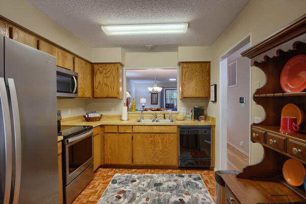 SOLD! Beautiful 2 bedroom 2 bath renovated & furnished end unit townhome close to Lake DeSoto & more. One 1evel, large rooms throughout. Master Suite, new bathroom with large walk-in shower. Guest Suite with private door to the new 2nd bathroom and access from the hall. New appliances throughout, front loading Maytag washer and dryer. Large Eat-in Kitchen with tons of storage. Great Room with lots of light, and open to spacious AR Rm with brand new skylight, lots of windows and ready to use as a vacation home, rental or step in and just bring your clothes. ADA friendly and close to DeSoto Golf Course, trails, Recreation Center and Swimming Pool, Police Station, Fire Station, restaurants, gas station and the West Gate. new roof and energy insulation 12/2020, new bathrooms in 2021, new skylight 2021, new stainless steel appliances 2021. Closing after 12/29/21.