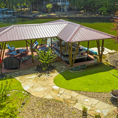 SOLD! This beautiful, loved 2-story home has everything you could want! Start your day waking up to a lakeside view. Get ready in a spacious master bathroom with quartz countertops. Enjoy breakfast in an open kitchen with deep storage. Travel downstairs to the already plumbed home gym. Prefer outdoors? Watch the dogwoods in the backyard or the shimmering water from the covered boat dock. 2 fireplaces; central vac system. Furniture negotiable!