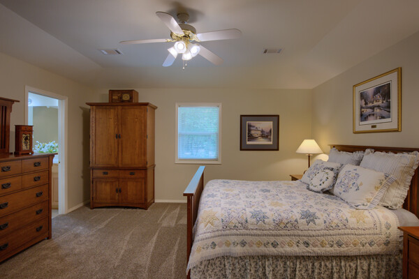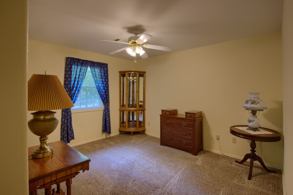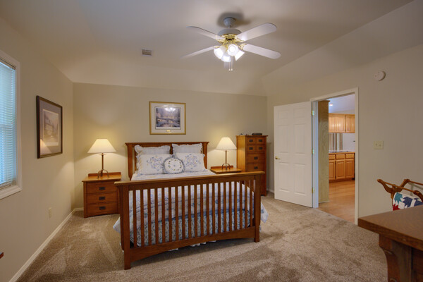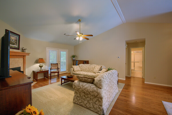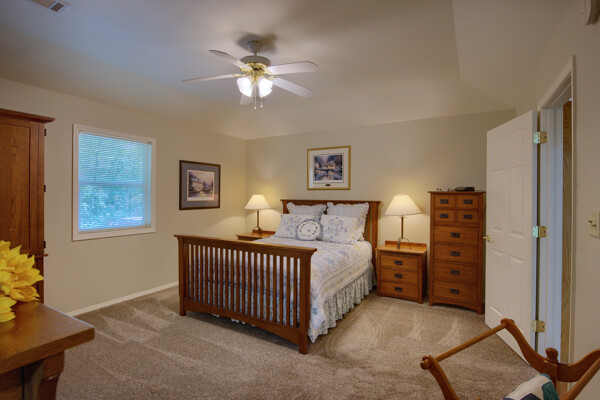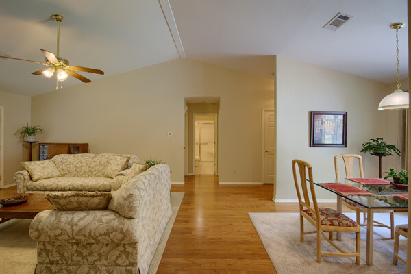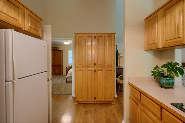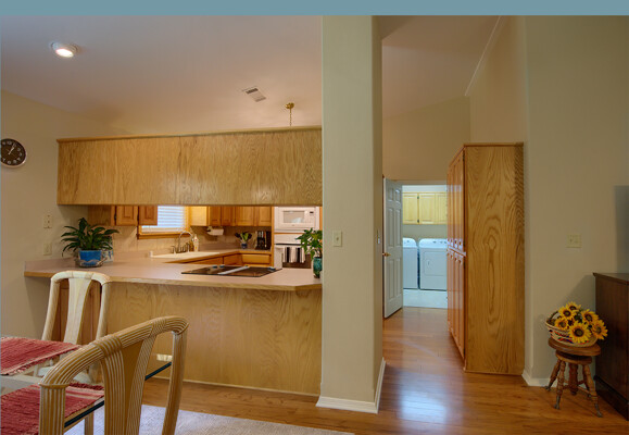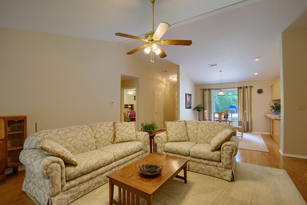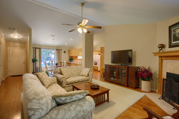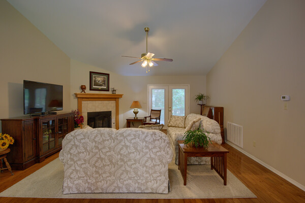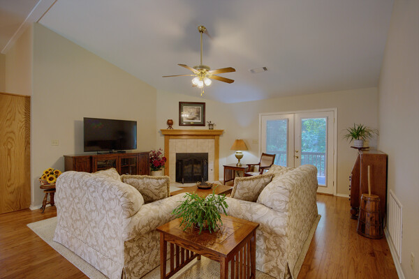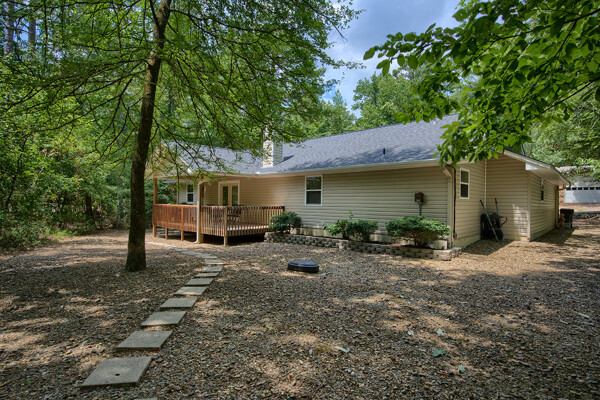 SOLD! Nothing to do but move into this immaculate home. One level, large Living Room w/vaulted ceiling & wood burning fireplace overlooks dining room & kitchen. Kitchen has oak cabinets, wall oven, smooth-top range with down-draft vent, large pantry, all appliances & ceramic backsplash. Owners Suite features large walk-in closet, jetted tub, walk-in shower, LVP & updated lighting & paint. 2 guest rooms large enough for queen size bed. Totally neutral decor, well maintained & loved. Covered deck overlooks private yard surrounded by trees. Garage has workshop/storage. Awesome home and ready for new owner.