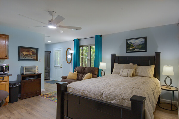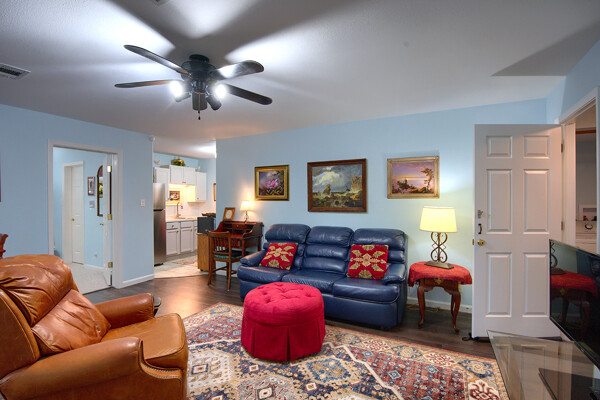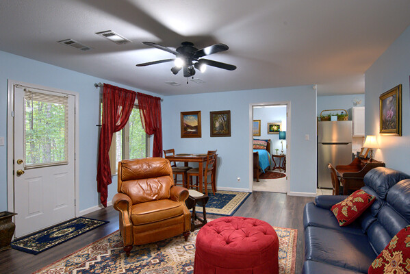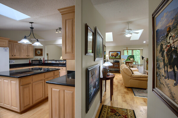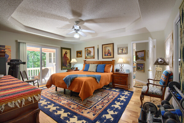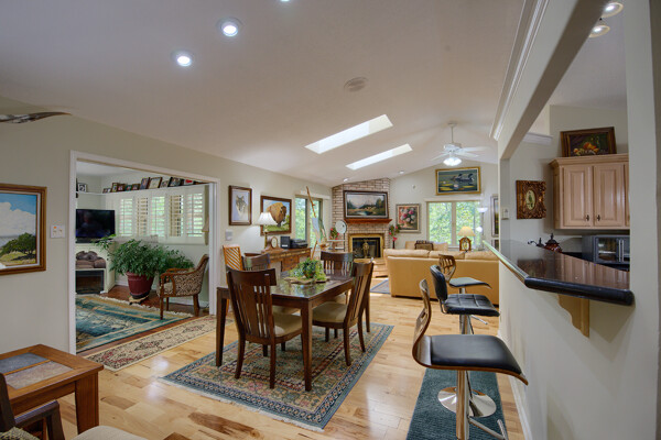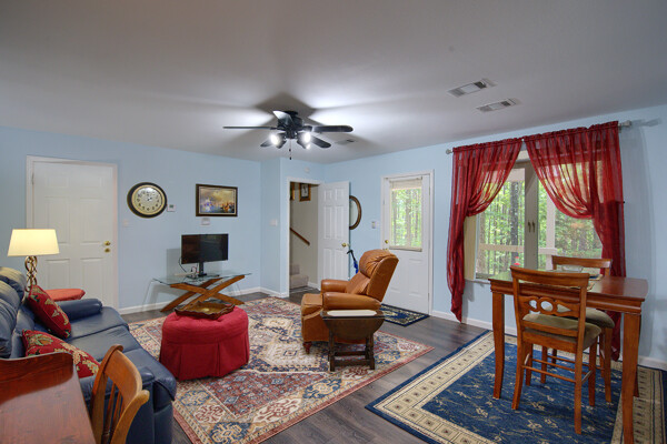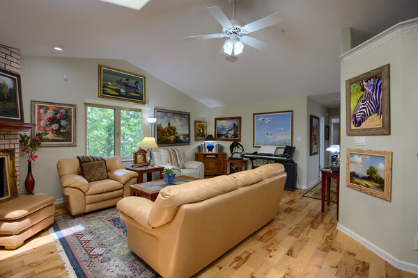 Surrounded by nature in a peaceful, quiet neighborhood yet just minutes from beautiful Lake DeSoto, Waypoint Cafe & Marina, hiking trails, and many other amenities. This one-of-a-kind 5 bedroom 4 and a half bath charming home is perfect as a multi-generational residence, an investment property, or for entertaining guests. The upper level features bright skylights, a gourmet kitchen, vaulted ceiling, sunroom, 3 bedrooms, and 2 and a half baths. The spacious primary suite with access to the deck boasts a large closet,ensuite bath with his & her walk-in closets, jetted step-in bath, step-in shower, and water closet. THE LOWER LEVEL consists of 2 fully furnished income-producing properties: a one-bedroom apartment and a studio apartment. The apartments have private entrances and a separate parking area. Nestled among the trees in the nation's largest gated community is this inviting gem. Make it yours today!
