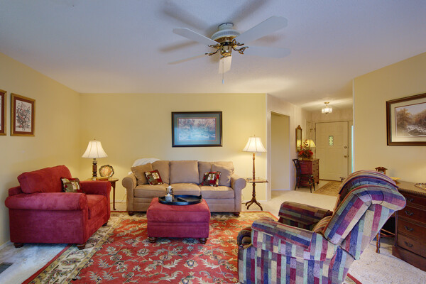 Here, in the heart of the village, with pristine views of Lake Pineda, is a hard to find single level townhouse with your own private dock and large carport. Inside, the corner fireplace highlights the Living Room and Dining Area. Views of the natural yard, special seating areas and lake beyond are mesmerizing. Even the galley kitchen has its own sweet view. The 2 BRs and 2 baths have a fine feeling of space. There's a front porch with a charm of its own. The party-sized deck feels like an extension of the living area. Village golf courses including (Coronado's Par 3), the Coronado boat launch and trail, the major tennis complex, and the amazing Natatorium are close at hand. A stairway from the carport to the floored attic, crawlspace below living area and a storage room provide plenty of storage. This house truly shows like new home. The high efficiency HVAC, Water Heater, all plumbing and roof are newer. The dock was refurbished last year. It’s a short walk to the private covered dock with electricity, ceiling fan with light and flood lights, an open area, and a boat hookup on the other side. Majorca Courts has an automatic lake-fed watering system.