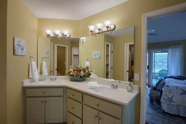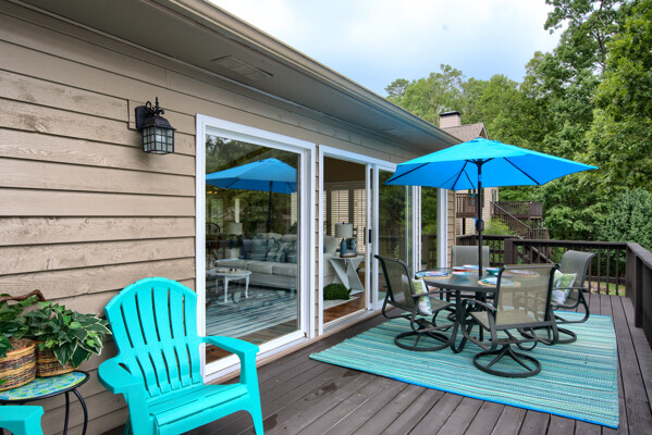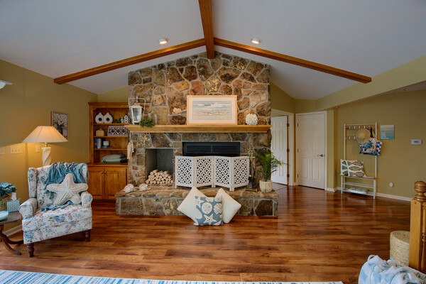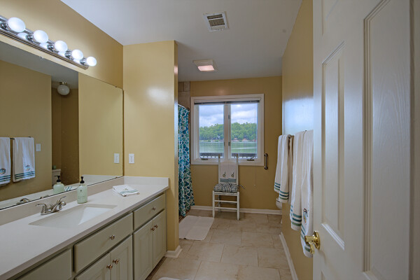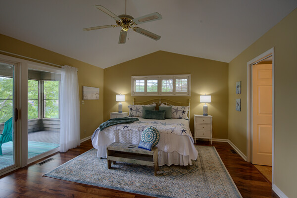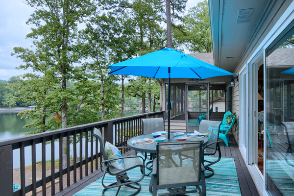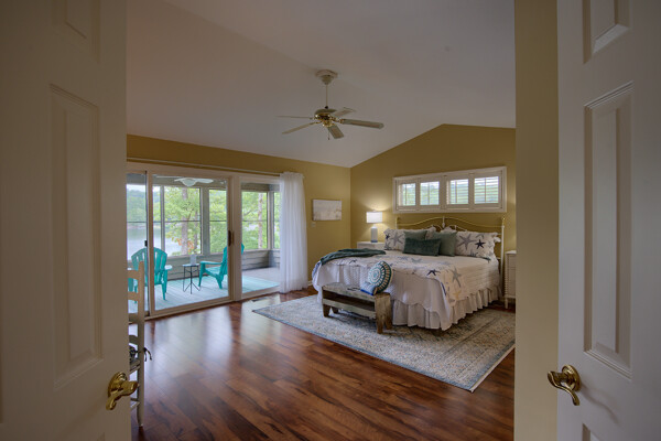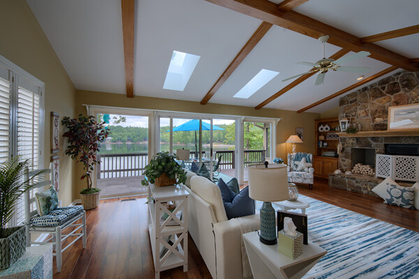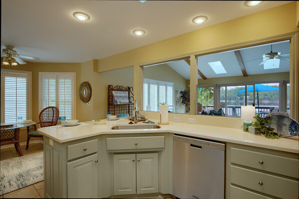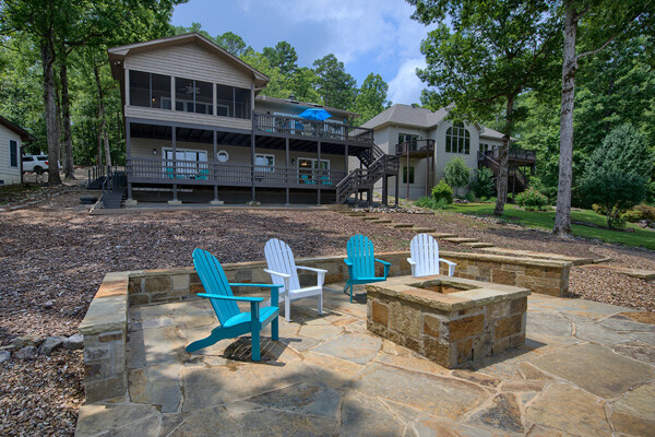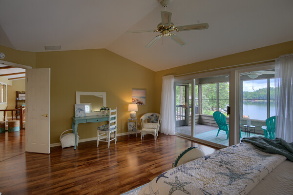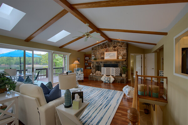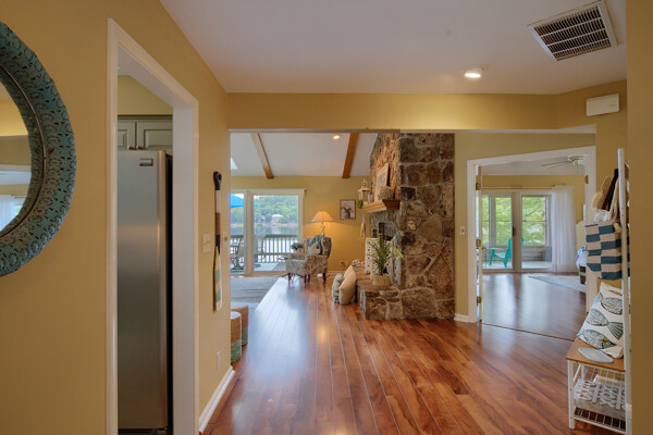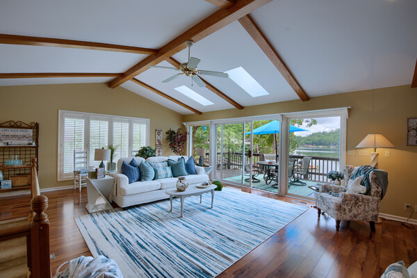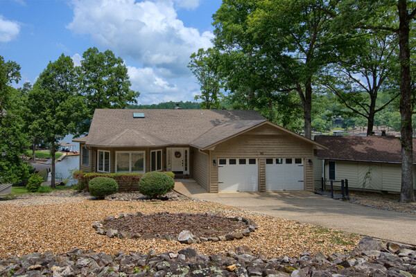 Just bring your clothes! This cool Lake Cortez home offers everything you're looking Open view of the lake from most rooms, 3 bedrooms,2 1/2 baths, wood, tile and carpet flooring. Vaulted ceiling with beams, fireplace, kitchen open to dining and living area. Kitchen has quartz counters and newer appliances. Screen Porch off primary bdrm. Walk-in showers in both baths. Skylights and plantation shutters-Lower level has laundry room and 2 bedrooms, full bath. Nice size deck, maintenance-free landscaping with fire pit. Furniture and appliances are included. Approx. 2586 heated and cooled square feet. 2 Car Garage. $1500 1st time initiation fee to POA for non-property owners