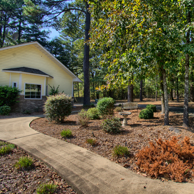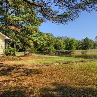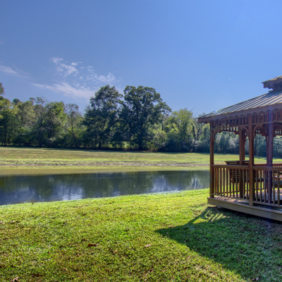 SOLD! Private park-like setting, and only 10 minutes to Walmart. A gently winding road leads you to a private retreat nestled among shade trees with pond and gazebo waiting for you. Custom-built home offering 3 bedrooms, 2 baths, formal Living and Dining Room with absolutely gorgeous glass Sun Room overlooking the pond, nature and wildlife. Spacious Living Room has tray ceilings, gas log fireplace, wet bar, built-ins and great natural light, a wonderful place to entertain. This home is energy efficient with 2 gas fireplaces, one in the Living Room, and one in Master Suite with a spectacular walk-in closet and bathroom. A formal Dining Room opens to Kitchen and lots of windows highlighting nature. Large open Kitchen has an island with breakfast bar, an good sized breakfast area, lots of tall cabinets and storage space, and comes move-in ready with all appliances. The large deck on the back offers propane hookup for your barbeque and a motorized SunSetter Awning for lunchtime get togethers. Additional features include; home security system, central vac system, irrigation system, and much more. Price includes a $10,000 flooring allowance.